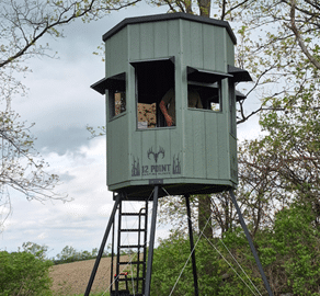 Field edges & plots: Enclosed stands shine anywhere you don’t have perfect trees or cover. A tower blind gives you elevation for visibility and cleaner angles while keeping you hidden on open ground. It also lets you set up where wind and access routes make sense, instead of where the only climbable tree happens to be.